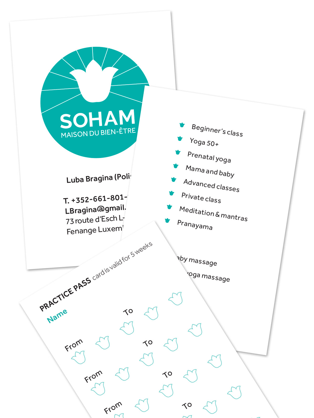 • Designed company’s logo and color theme • • Created membership cards, class passes and gift cards • • Put together a set of print material to help promote the studio •